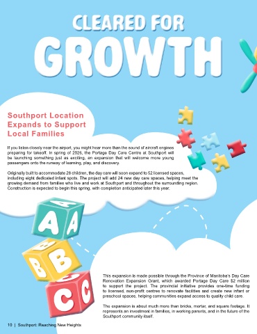 preparing for takeoff. In spring of 2026, the Portage Day Care Centre at Southport will